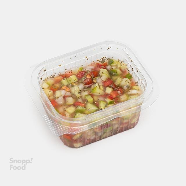 250 گرم سینه مرغ سوخاری، گوجه، خیارشور، سیب زمینی سرخ شده، یک عدد سس کچاپ یک نفره